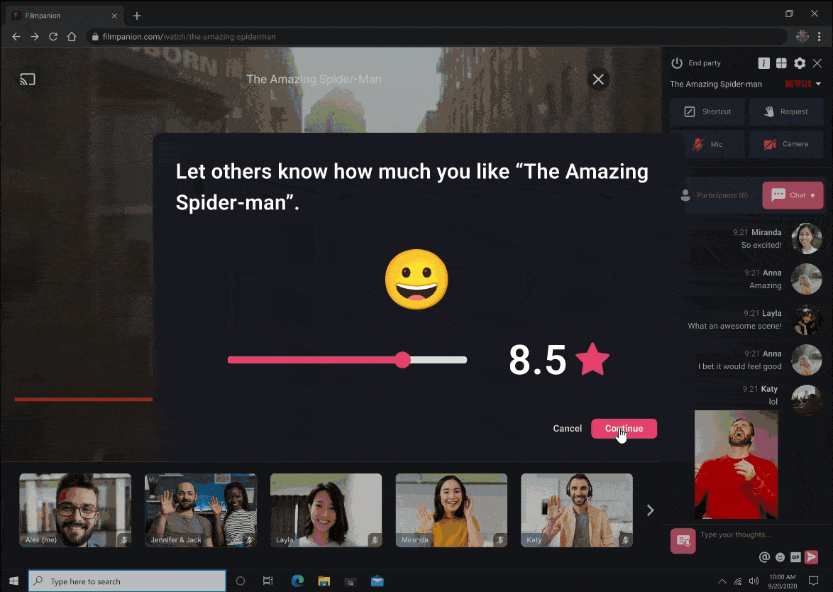 But with COVID-19 crisis, people realize the importance of a virtual platform that allow you to watch film with someone that lives far away or can not be visited. I graps the opportunity and want to explore how to make this “virtual watch party” journey as enjoyable as possible.